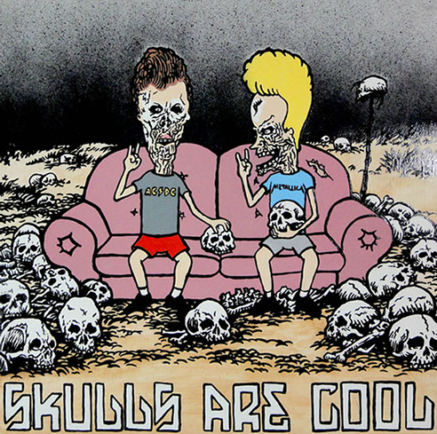 03. Skulls Are Cool, acrylic and spray paint, 12 x 12 in, 2011
