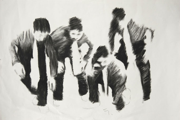 01. Congregating 1, charcoal drawing, 36 x 24 in, 2006