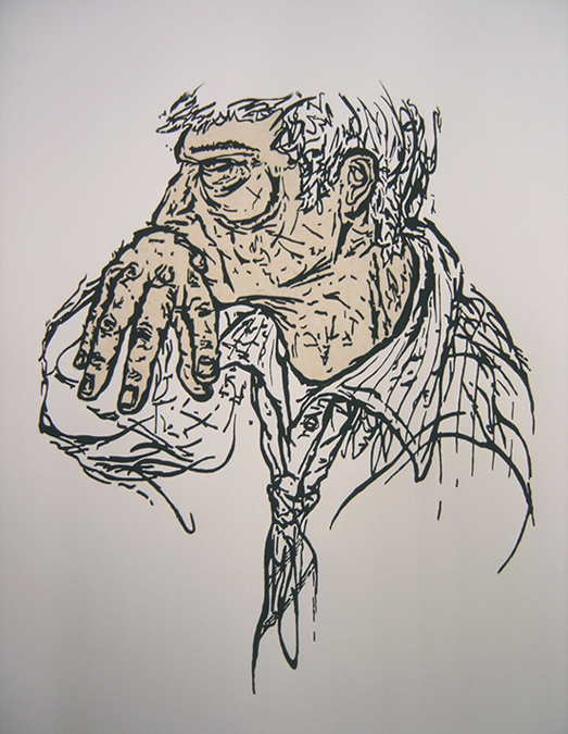 01. Huddled, woodcut, 52 x 42 in, 2006