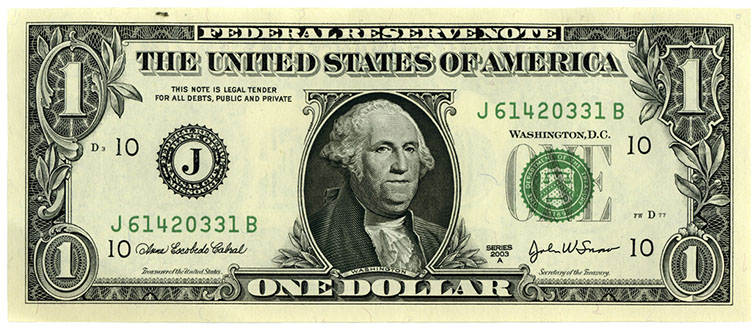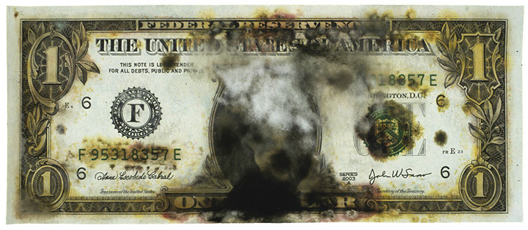 09. Short One-dollar Bill, digital print, 2½ x 3¼ in, 2008