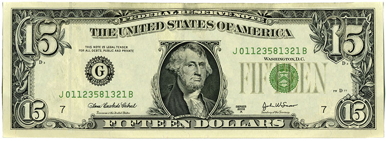 08. Fifteen Dollar Bill, digital print, 2½ x 7 in, 2007