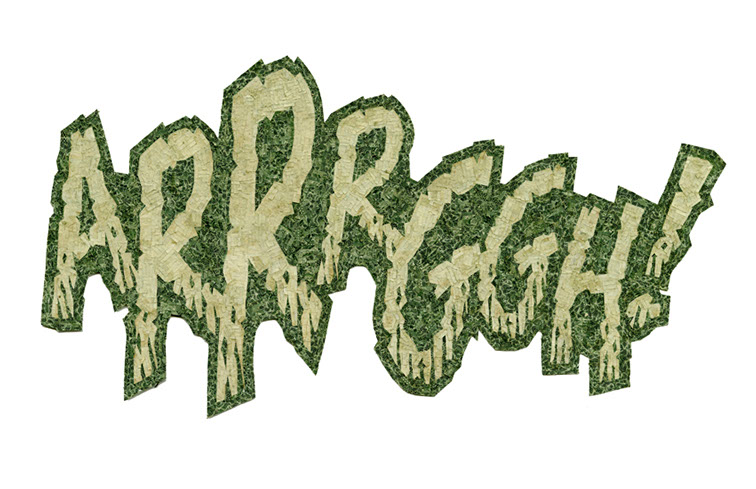 01. Arrrggh!, cut U.S. currency collage, 7 x 11 in, 2012