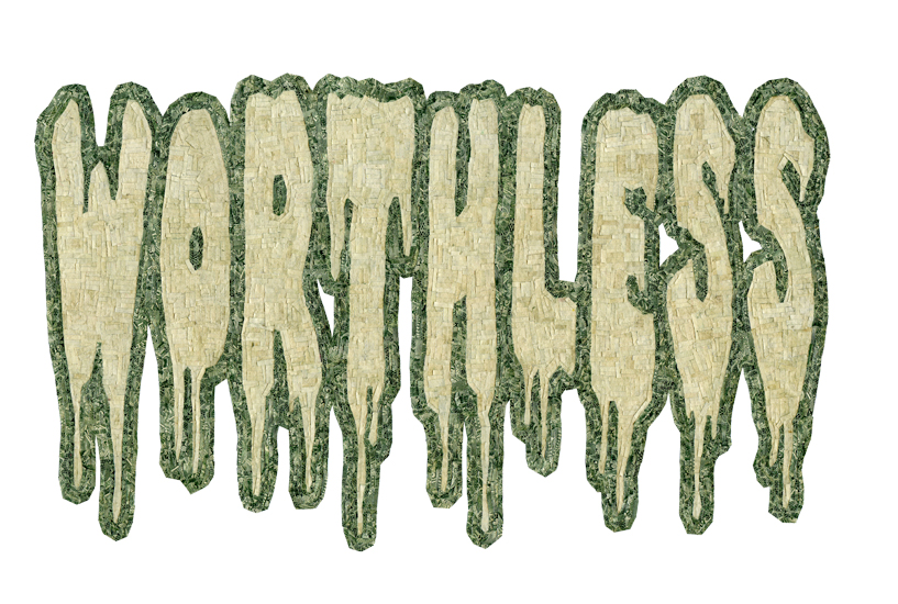 05. Worthless, cut U.S. currency collage, 6 x 10 1/2 in, 2013